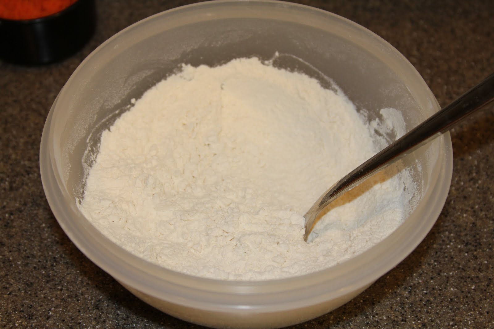 Add oil in a steady stream, then add dry 1/2 C at a time