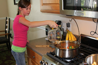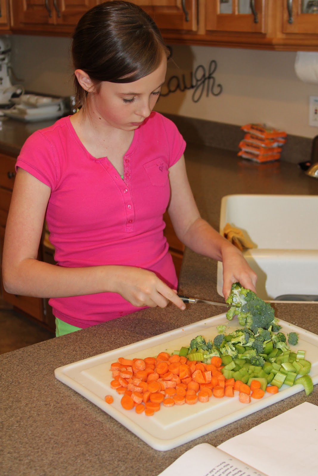 She got the recipes from her Home Ec class at school and has made some of them for our family. I asked her to make a couple again so we could post them on my blog! This Stir Fry is perfect for kids to learn to chop vegetables and use the stove. She did a really great job! Everyone loves this dish so help your kids give it a try 🙂