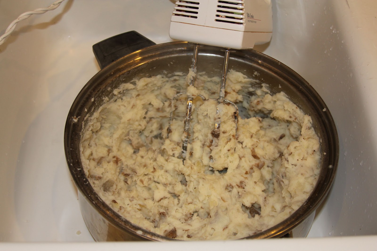 11. Place pot in sink with a hand mixer blend the potatoes. (to reduce mess)