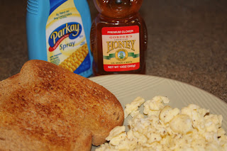 Protein eggs and Whole Wheat toast (don’t you love that butter spray? I do with a little honey!)