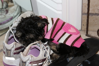 Our new puppy, Lila, asleep on my running shoes…