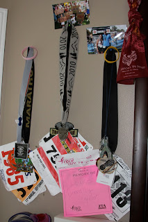 I try to run the Komen Race for the Cure every year… This is where I keep my finishers medals! It’s kinda my “Ruthie Rocks” spot (we all have something a little like that, right?) You can see the Kolmen race tag… it says, “I race in memory of ‘Louise Connolly, Gram'” on it.