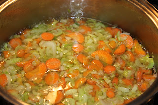 Add the noodles and cook according to package directions. (the kind I buy are defrosted for 1 minute and cooked for 10-15 minutes, I just throw them right in the pot and save on clean up!)