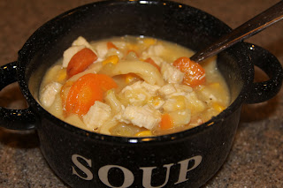 | Add corn, cream of chicken, and egg noodles. Cook until noodles are done approx 10-15 minutes. |