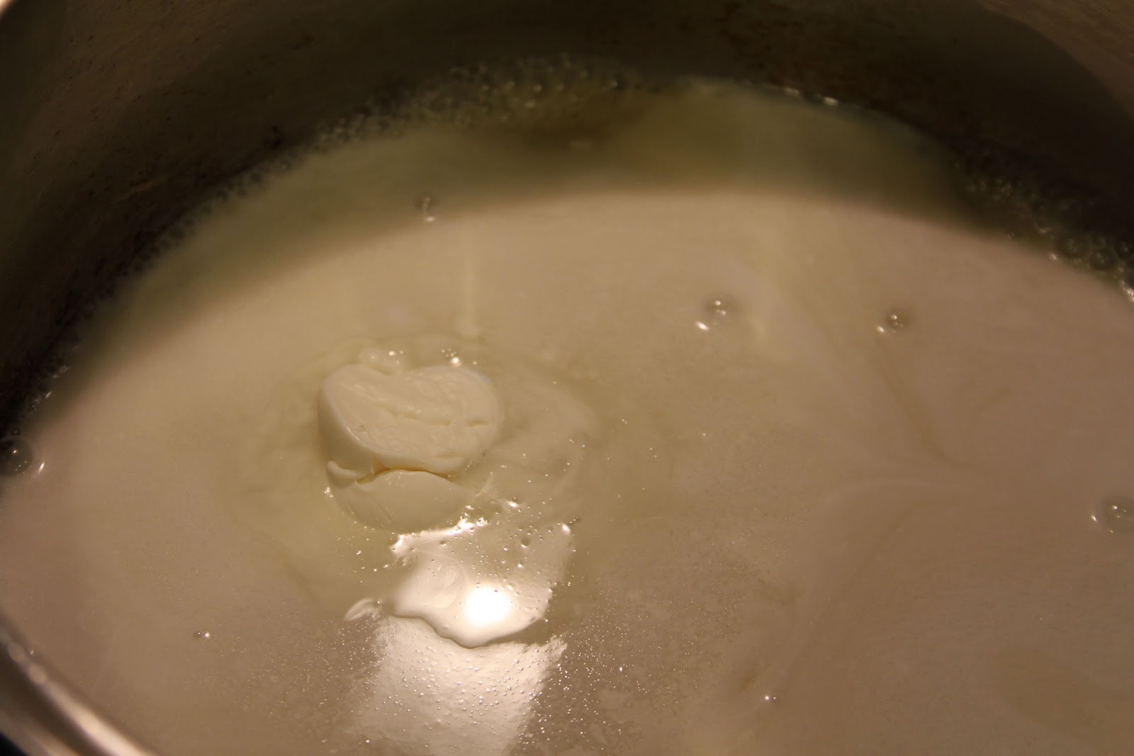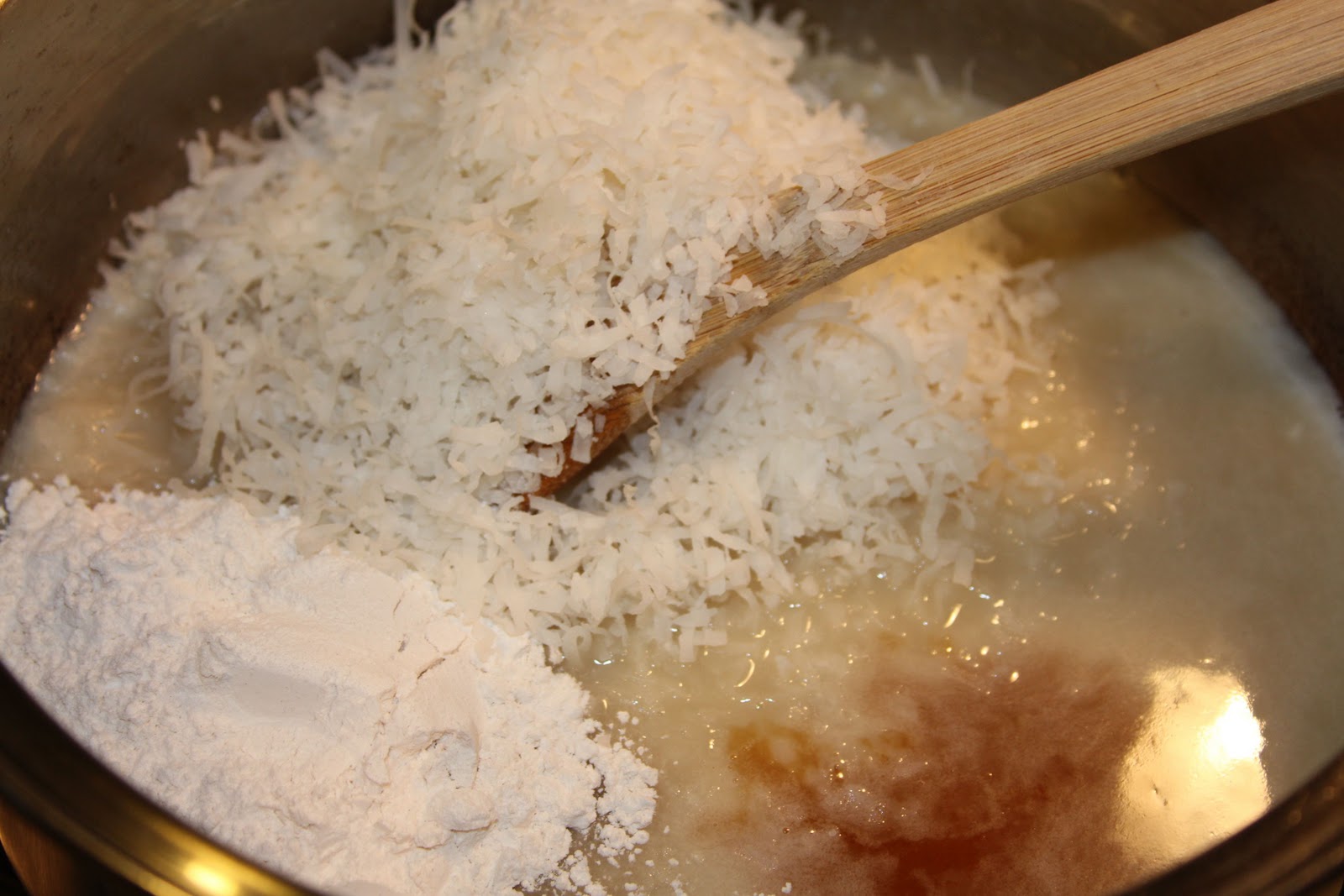 Combine coconut milk, spread, raw sugar, salt over medium heat til sugar is melted