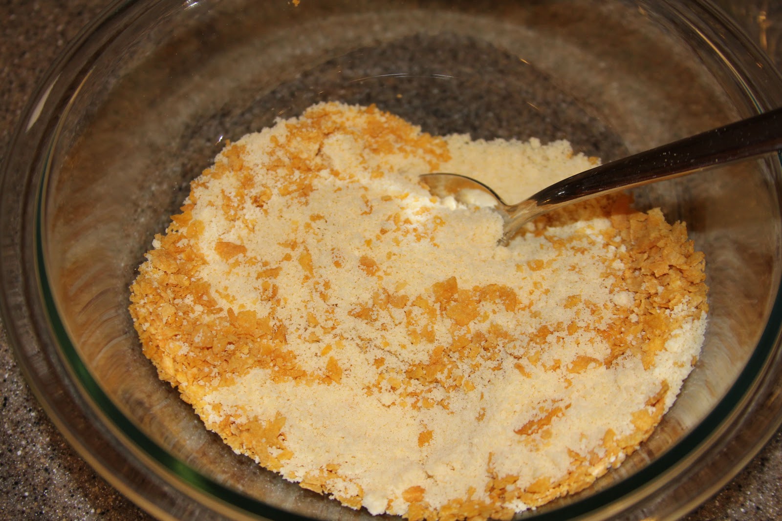 Mix crushed Corn Flakes and Sprinkled Parmesan