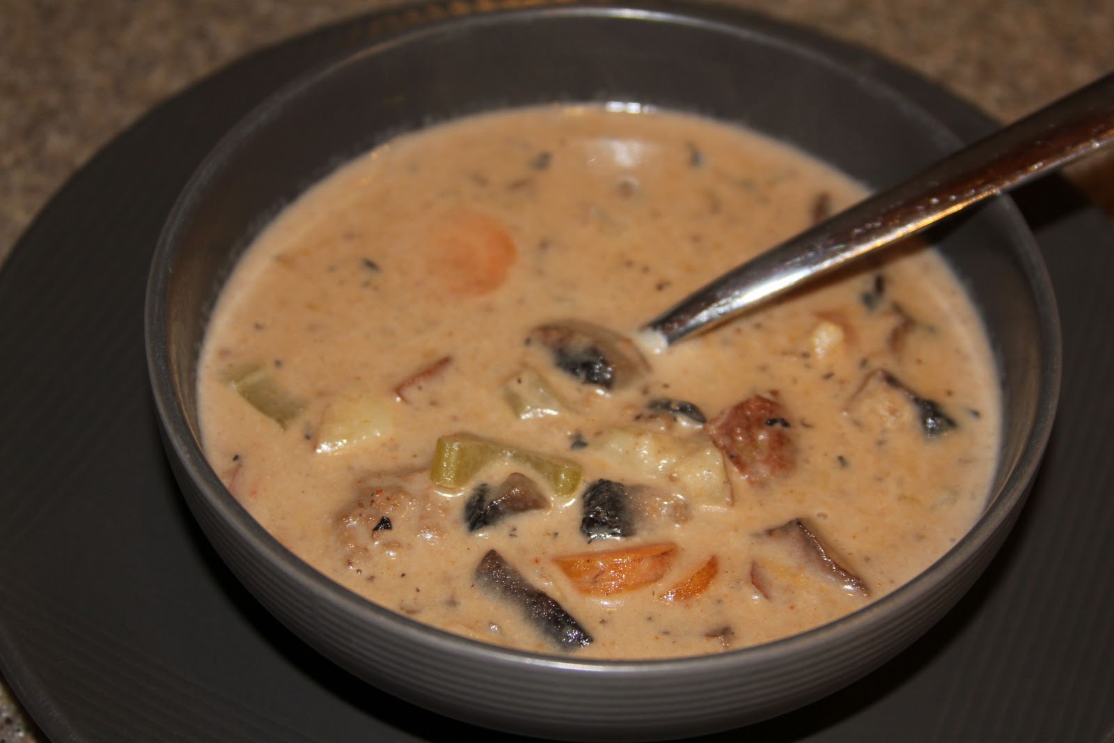 Jake eats a bit more and upon inspecting his bowl of soup declares: Then WHAT is that? (Holding a piece of mushroom on his spoon!!)