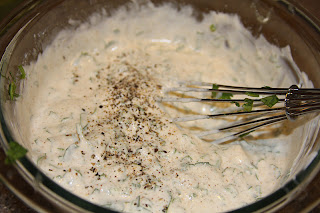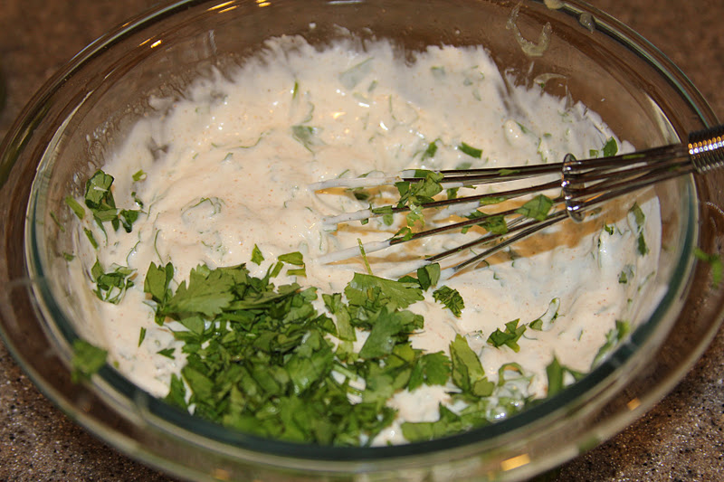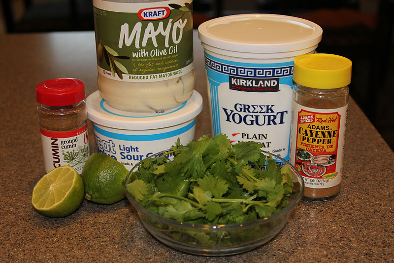 1/2 C lowfat mayo (I use 1/4C lowfat mayo and 1/4C plain greek yogurt) 1/2 C lowfat sourcream (don’t go non-fat… it’s nasty) 1/2 bunch of cilantro, chopped 1/2 tsp cumin 1/2 tsp cayenne 1 Tbsp lime juice salt and pepper to taste Combine ingredients in a small mixing bowl. Serve on Fish Tacos