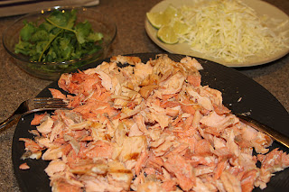 Flake salmon, layer all in a corn tortilla