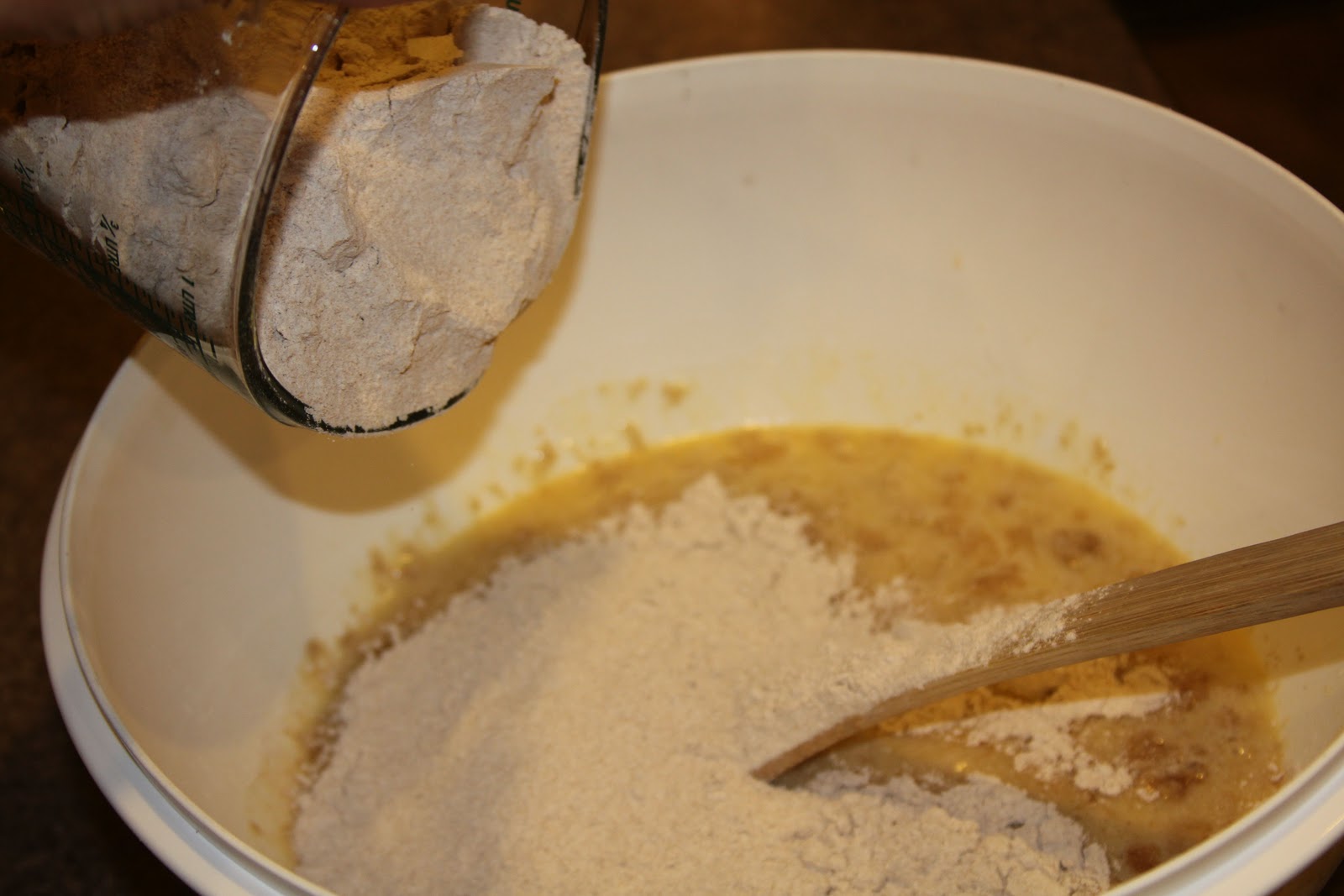 5. Add 1 C of flour at a time, mix well. Repeat.