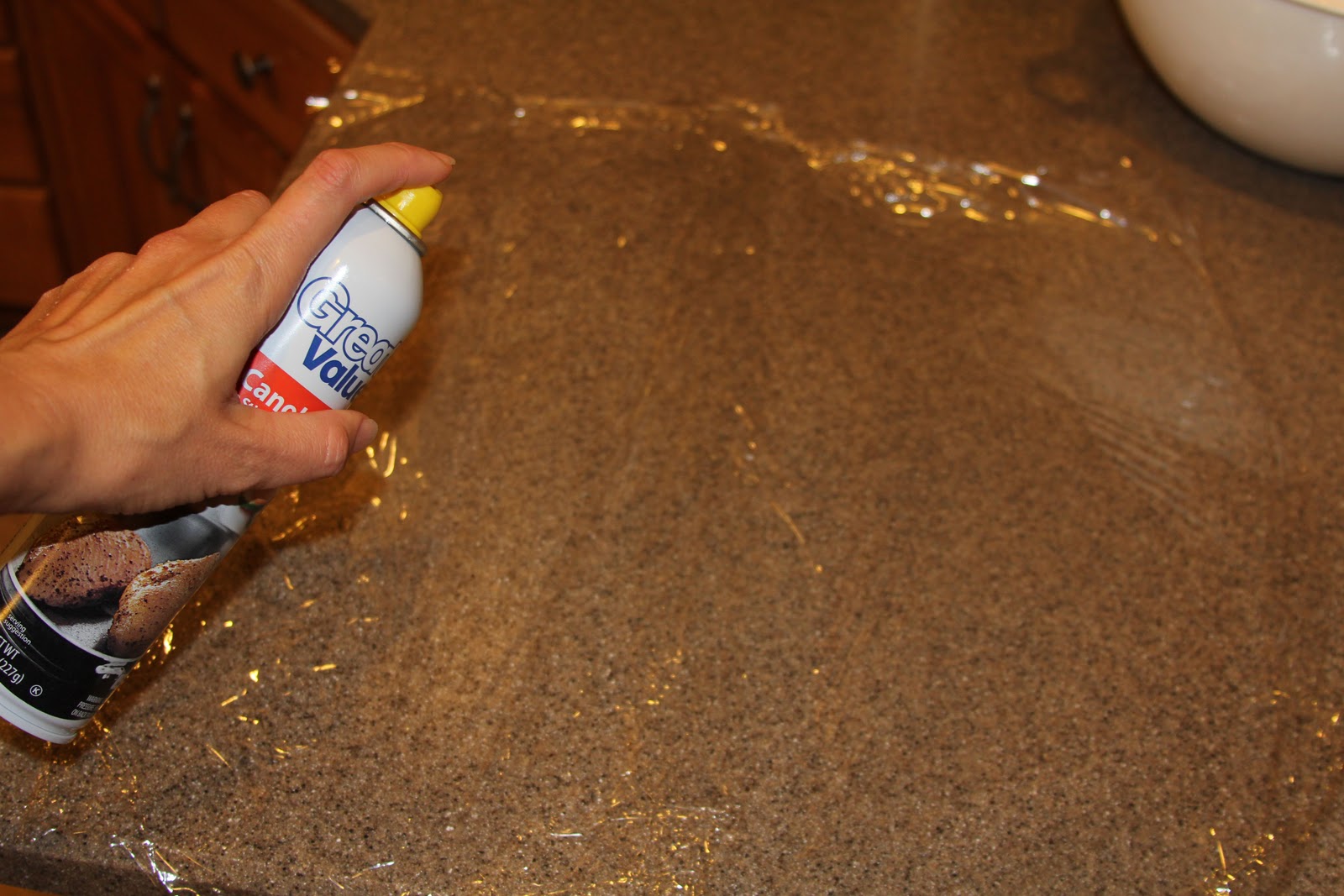 6. Cover with a cooking sprayed piece of seran wrap.