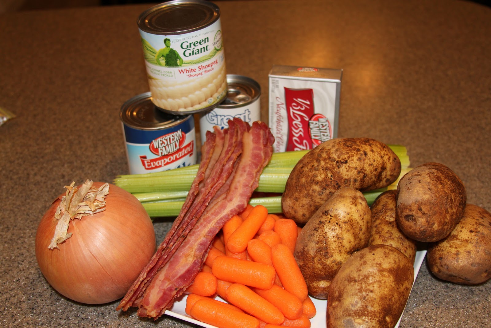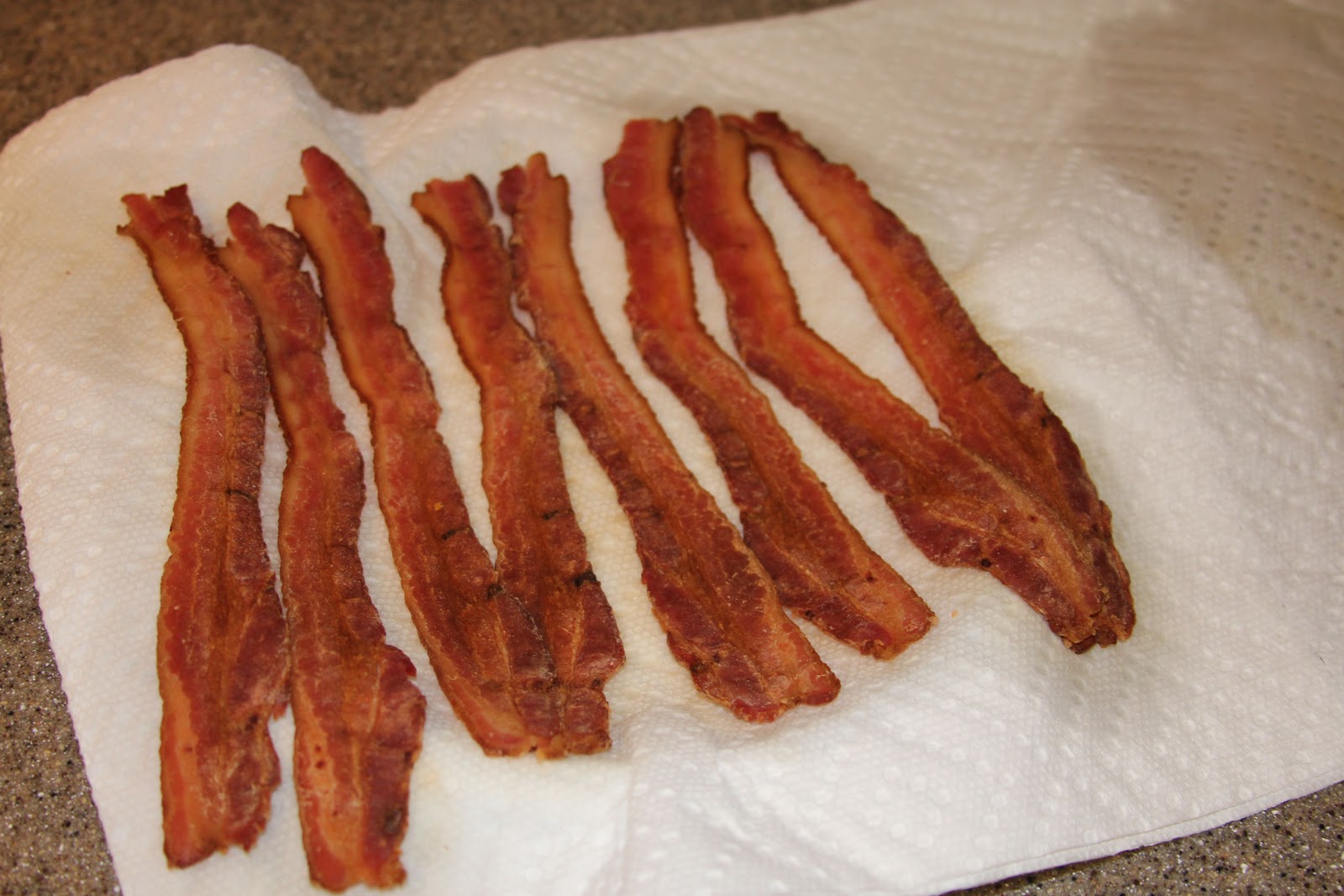 • 8 strips of bacon, cooked, crumbled (I use a paper plate, paper towels, and zap them in the microwave)