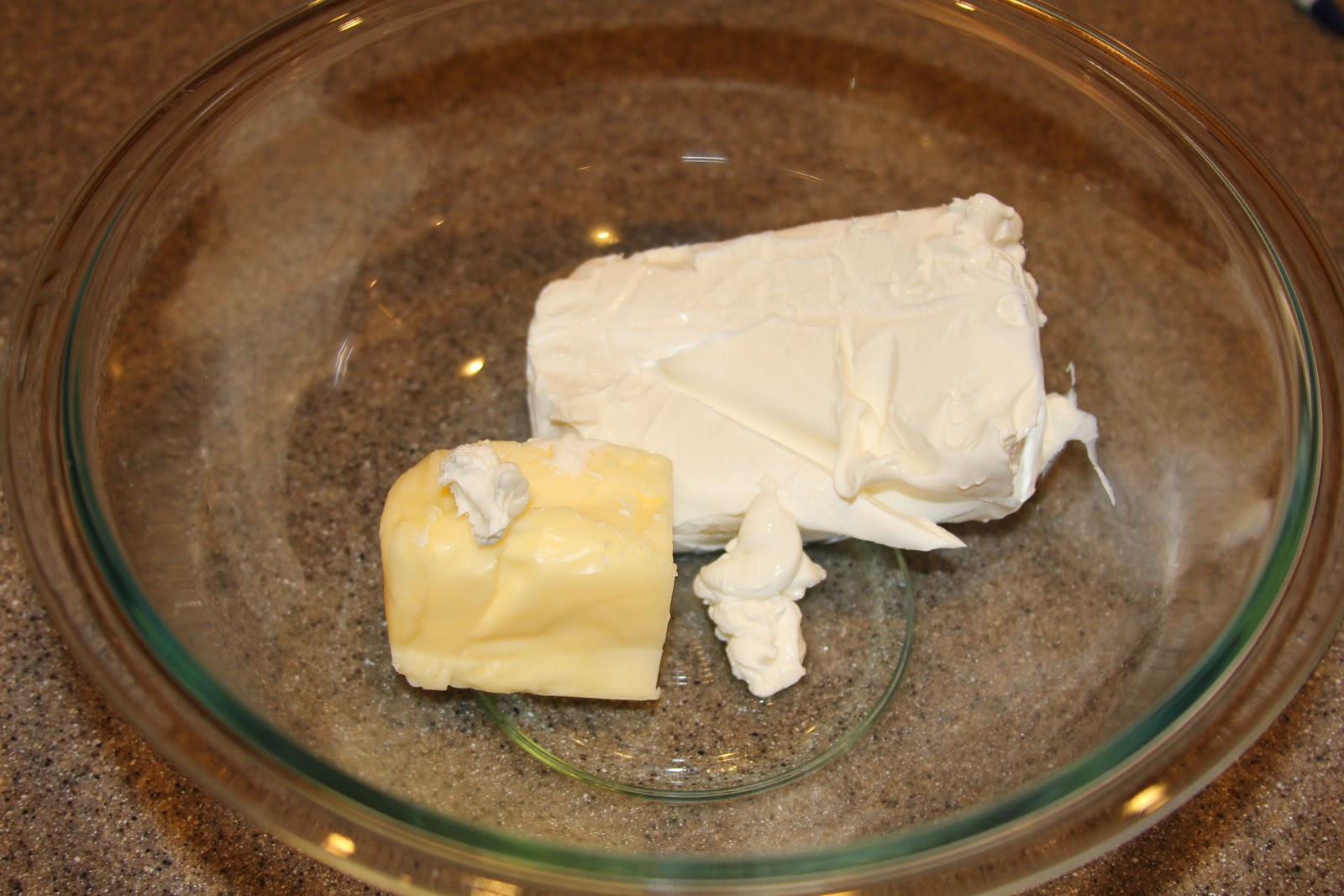 2. In a mixing bowl combine cream cheese, butter, microwave 1 minute, stir.