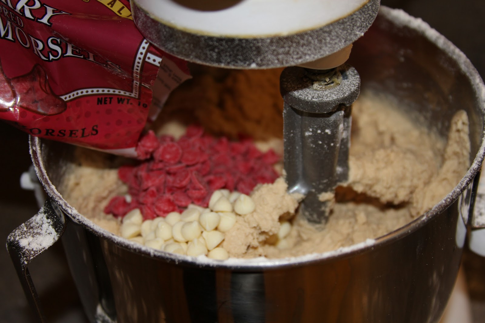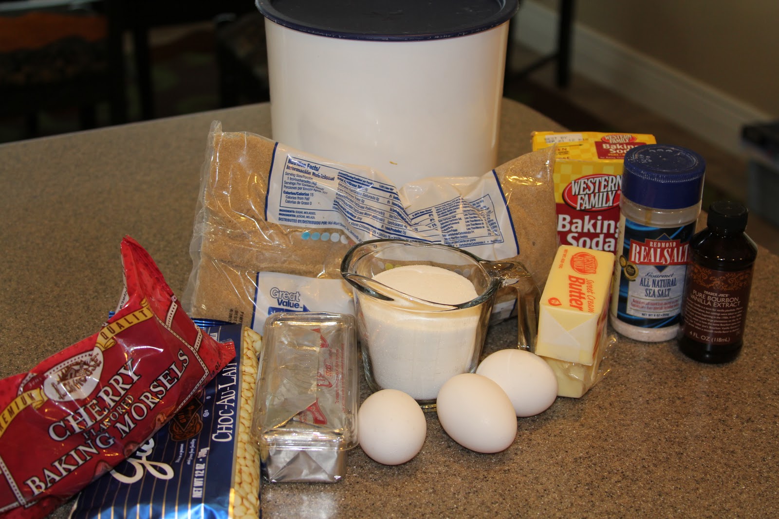 1 pkg chocolate chips (I used 1/2 pkg cherry chips and 1/2 pkg of white choc chips)