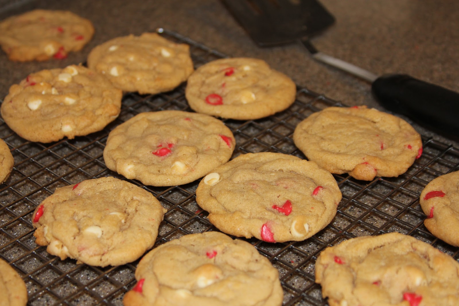 I put a little Christmas spin on them by switching out the chocolate chips with cherry and white chocolate chips!! They’re just as good! Plus they look nice and festive for this time of year!