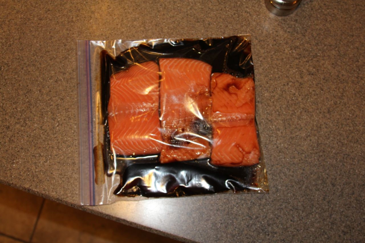 Add salmon and place in fridge over night to marinate (mine marinated almost 24 hours)