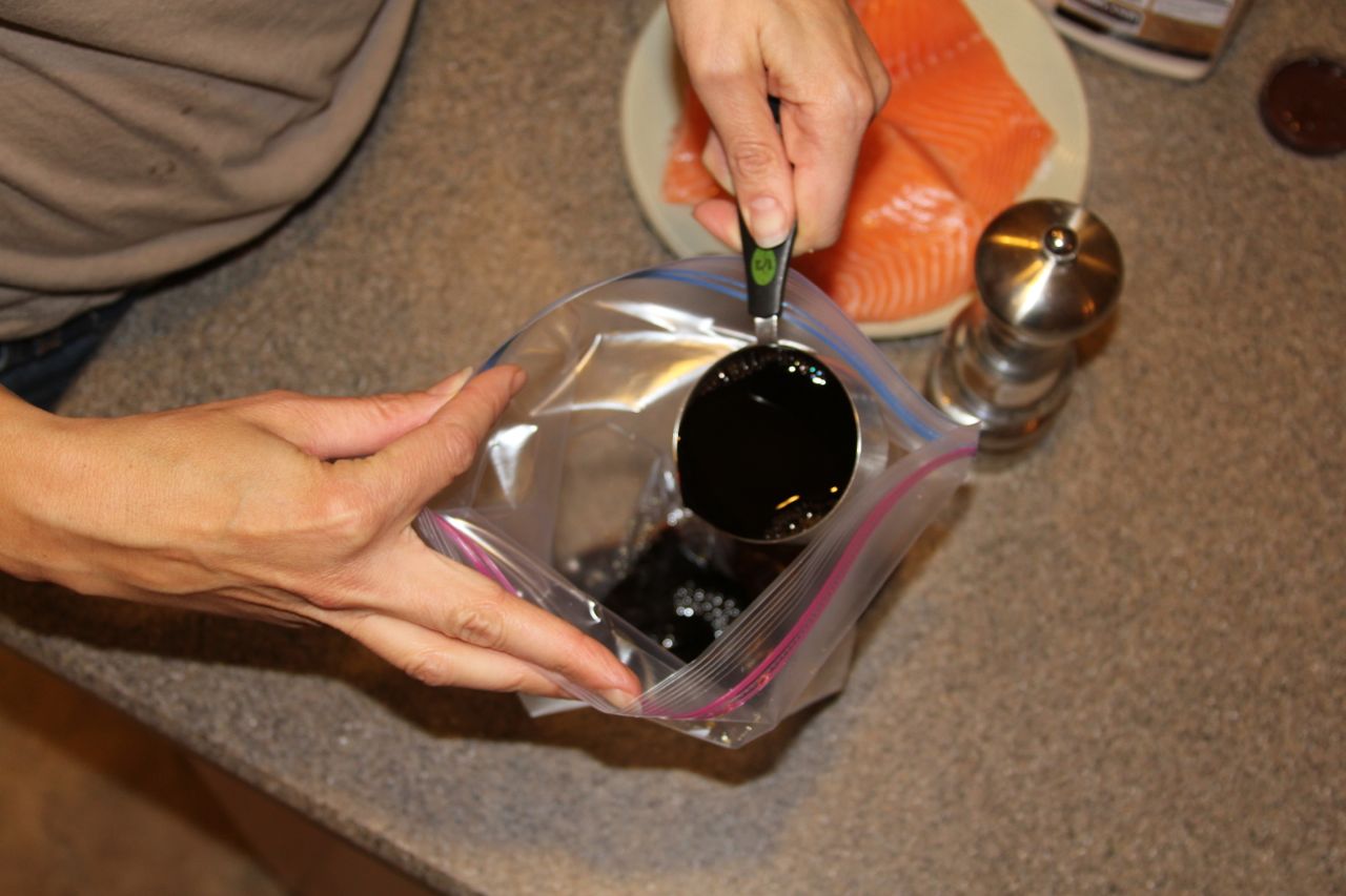 5. Drizzle 2 Tbls of marinade over the salmon, discard remaining.
