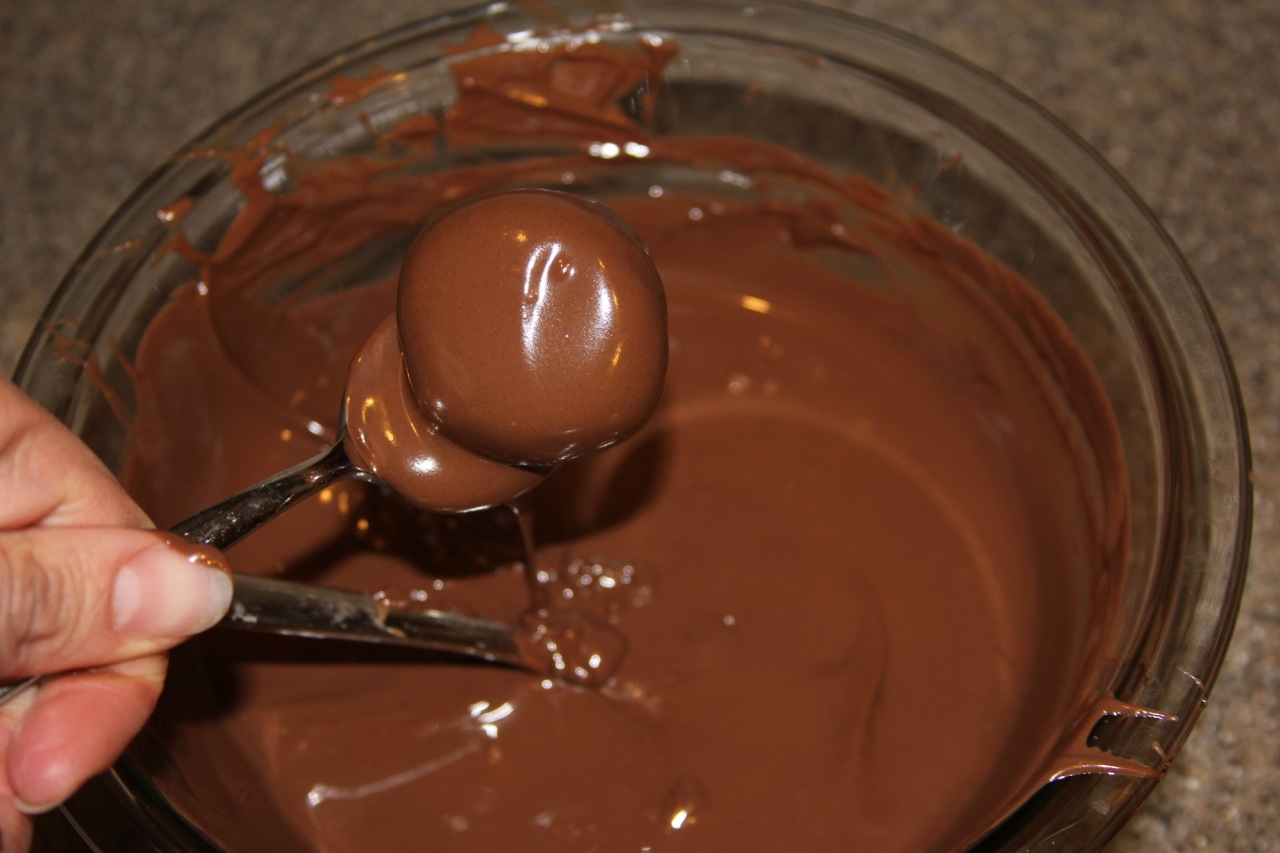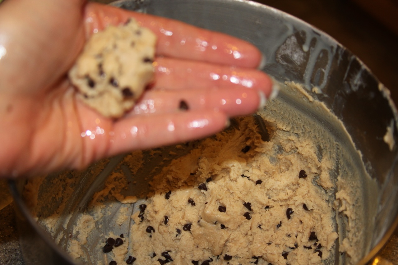 Last Saturday while we were visiting at my mom’s and having fudge boot camp : ) My sister, Louise, starts making these Cookie Dough Truffles… they were so YUM that I wanted to share them with you! These Cookie Dough Truffles don’t have any egg in them so they’re a “safe” cookie dough to eat! AND I think at Christmas time ALL treats are calorie-free, right?? YES, I completely agree…