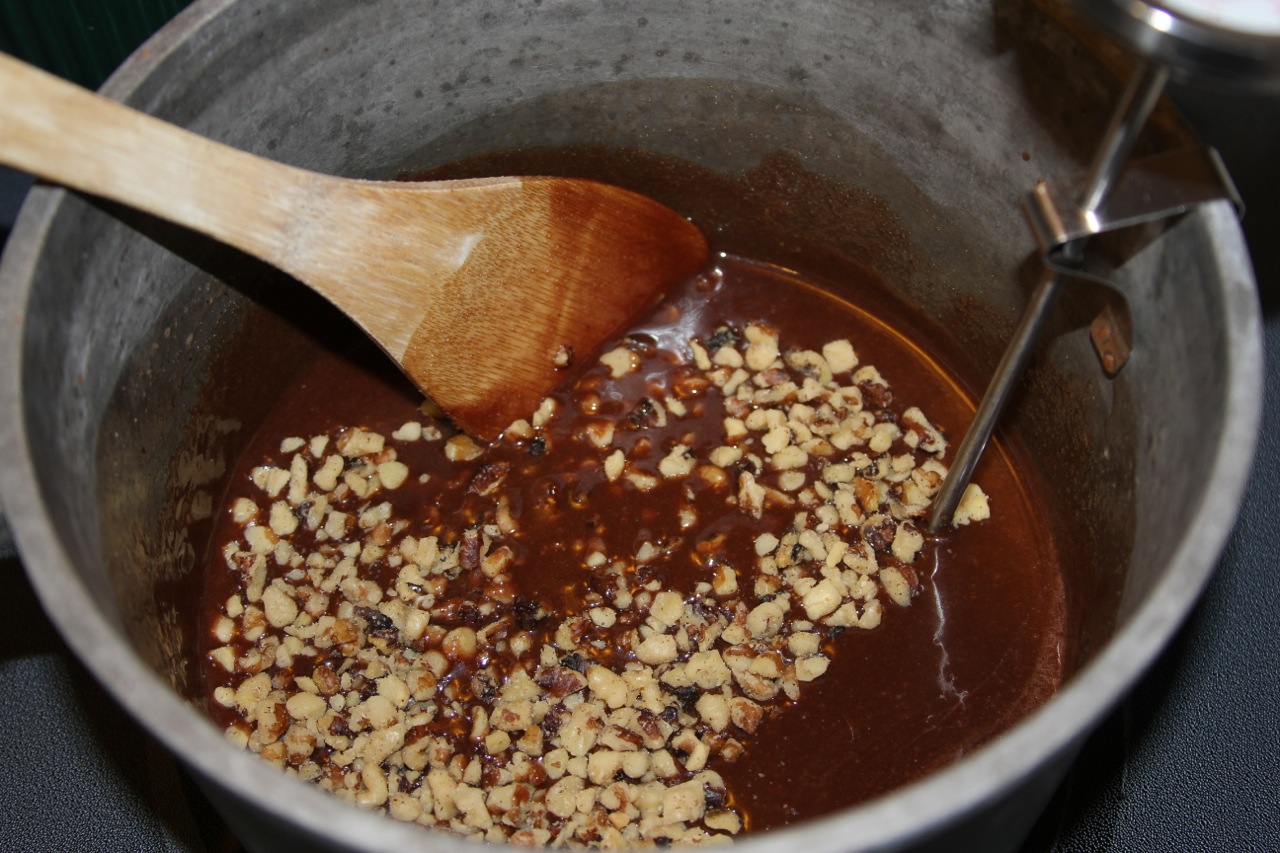 #2 put the nuts into the fudge while it cooks so they get softened up.