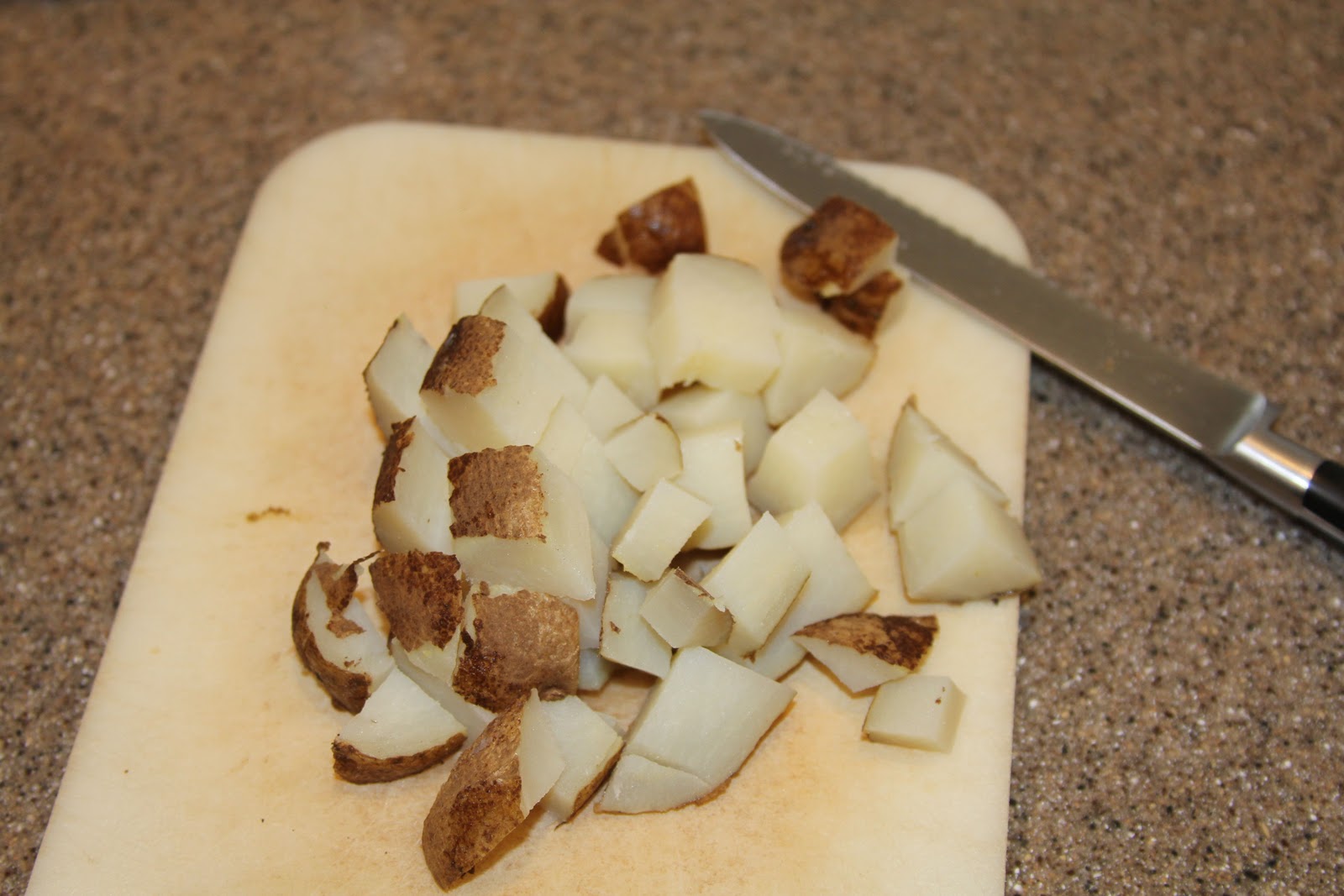 • 4 baked potatoes, diced (or dice 4 potatoes, cover with water, cook until tender soft, drain)