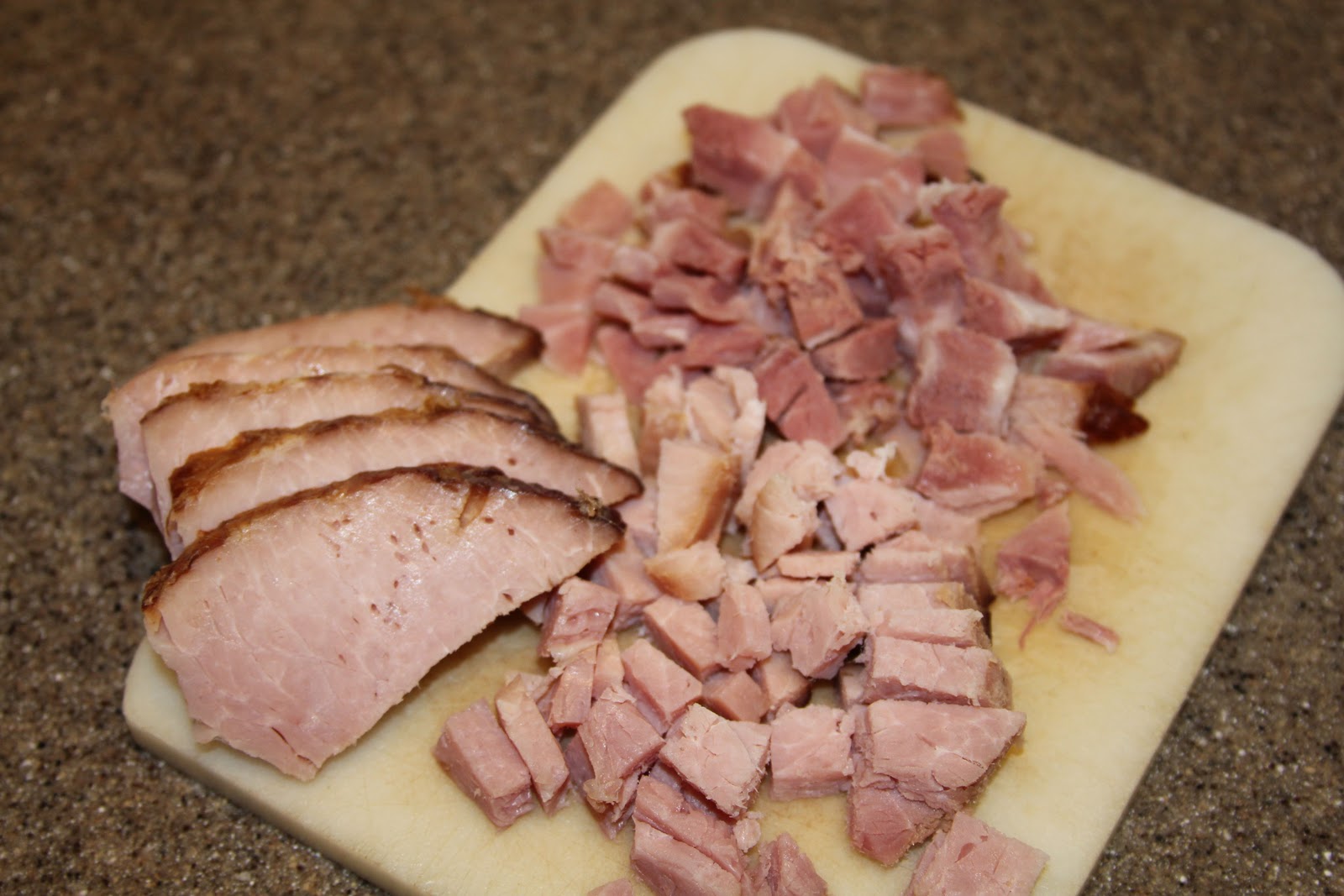 • 2 C baked ham, diced (leftovers if you have them)