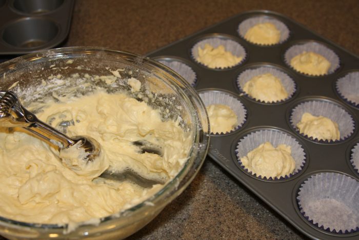 2. Line 2 cupcake pans with 18 paper liners.