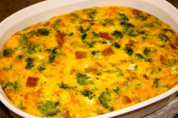 Just in case there’s some Christmas ham still lingering about your kitchen… here’s a Ham and Broccoli Frittata that’ll use some up!  We  love Frittata’s! They’re like a baked omelette and you can throw them together in all sortas ways.  SO think big here cuz the basics are always the same and they turn out great no matter what I throw into them (well, you know, omlet-ish ingredients)