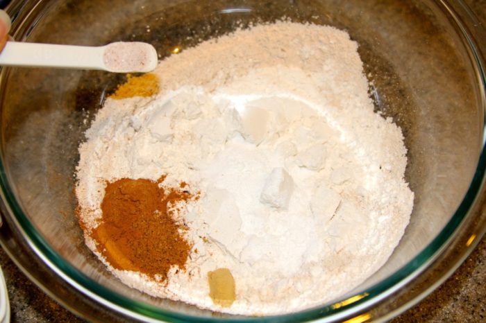 - Add spices, salt, and baking powder/soda