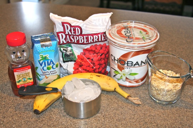 - Ingredients for Raspberry Oatmeal Smoothie