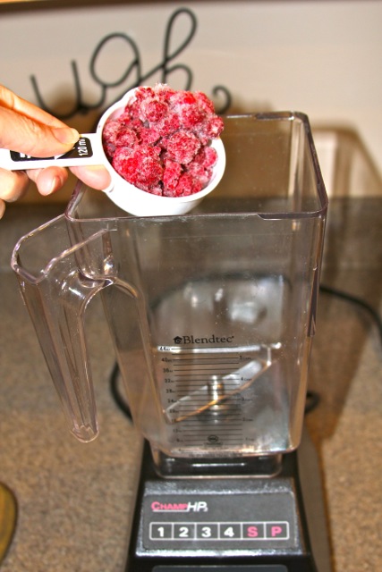- 1/2 C frozen raspberries
