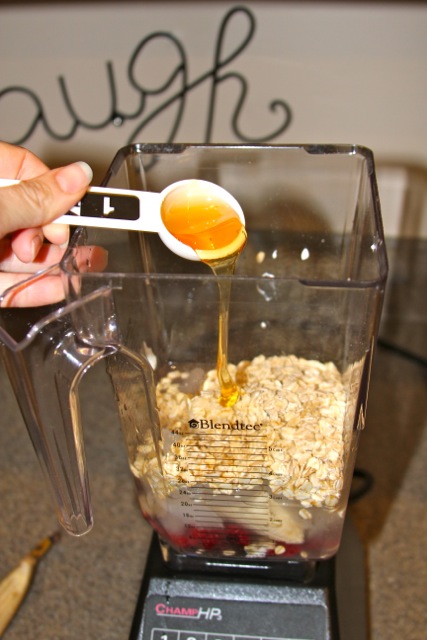 - AND last but not least… add honey!! Let her whirl!!