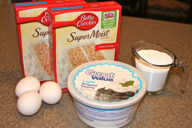- In a large mixing bowl. combine eggs, cake mixes, and whipped topping; mix well.