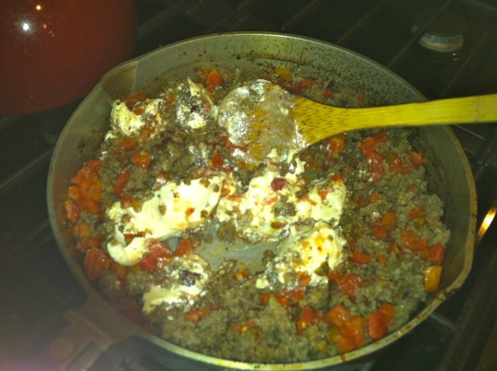 - Return to pan, add Rotel, and cream cheese.