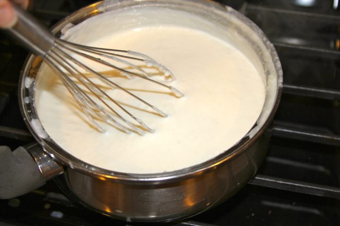 - Once you have a white sauce, bring a gentle boil to thicken and remove from heat
