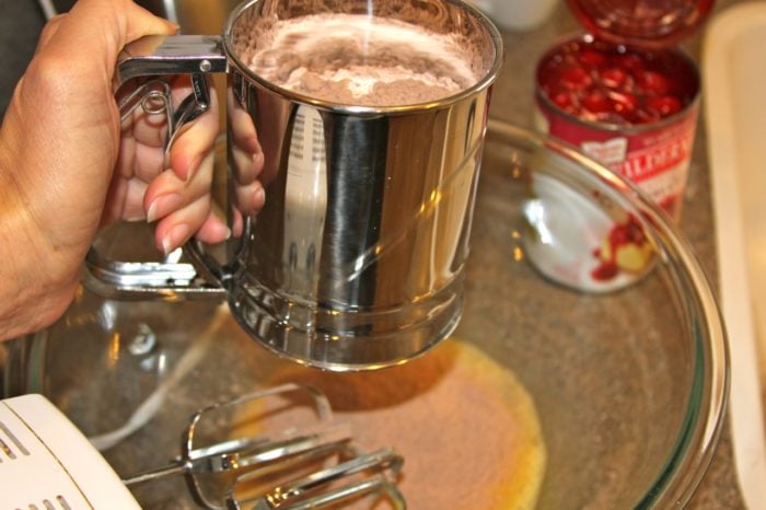 - Sift in the box of cake mix