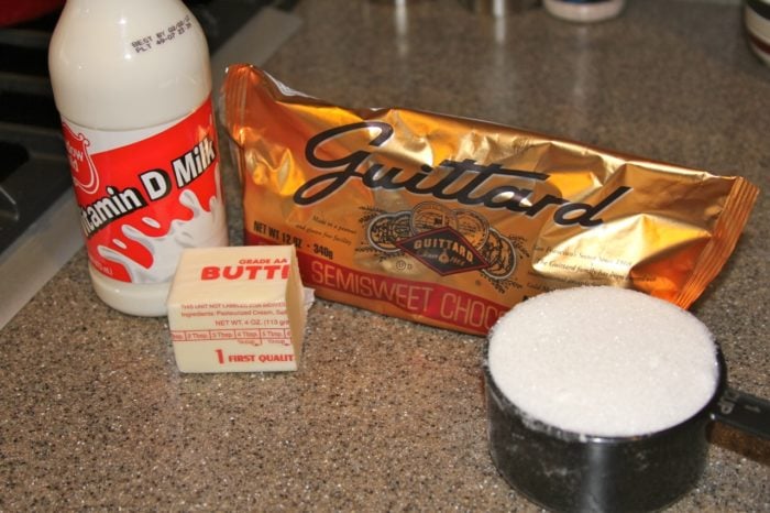 - In a small sauce pan over medium low heat, melt butter, add sugar and milk.