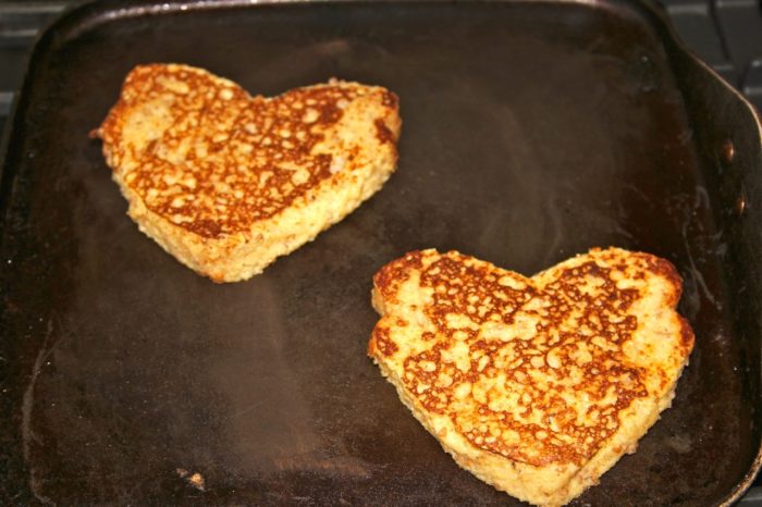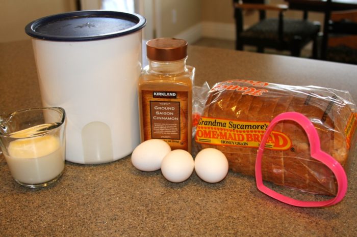 Valentine French Toast is a cute way to say “I Love You” on Valentine’s morning! Of course any other day of the year you can EX the heart shaped cookie cutters and just have Cinnamon Sugar French Toast… It’s easy to make and the ingredients are always around!