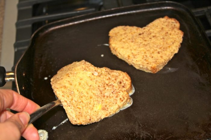 *Here’s another idea for the leftover cut out bread slices: Cook them as directed above, once it’s turned over crack an egg into the whole and cover with a lid. Bake for 2 minutes for an easy-over french dipped toast!!