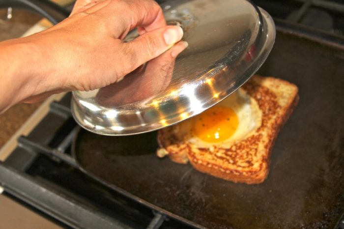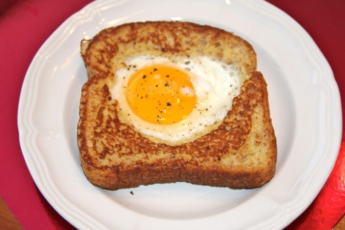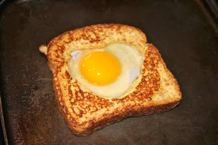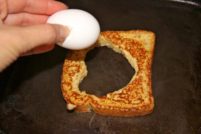 - *Here's another idea for the leftover cut out bread slices: Cook them as directed above, once it's turned over crack an egg into the whole and cover with a lid. Bake for 2 minutes for an easy-over french dipped toast!!