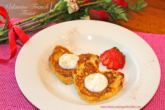 I love to cook AND I love to cook for the people I love so, for Valentines morning I thought of this cute and healthy Valentine French Toast to say, “I love you!”