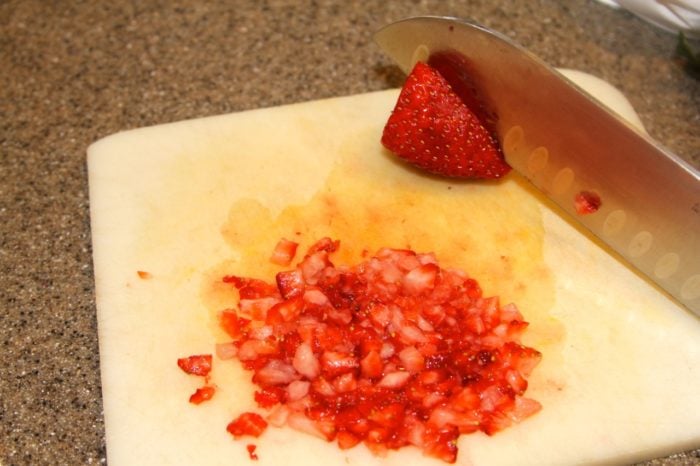 6. Frosting: In a small mixing bowl cream butter, add cream cheese, beat until smooth. Add vanilla. Add 1 cup powdered sugar at a time, beat well. (reserve 1/2 C to thicken, if needed, after the strawberries are added) Add strawberries, if too soft to pipe, add another 1/2 C powdered sugar.