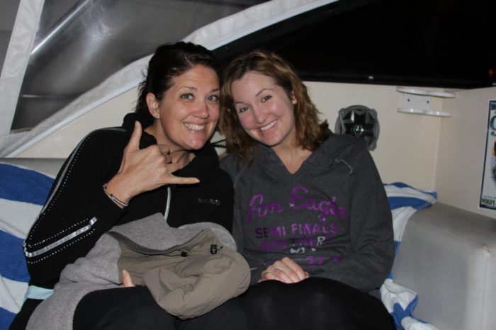 So, here are Em and I headed out to sea in the wee hours of the morning… waiting for the Dramamine to set it in!