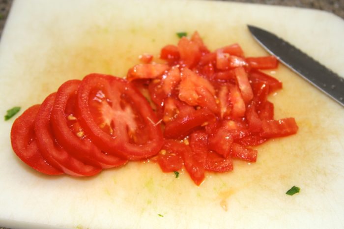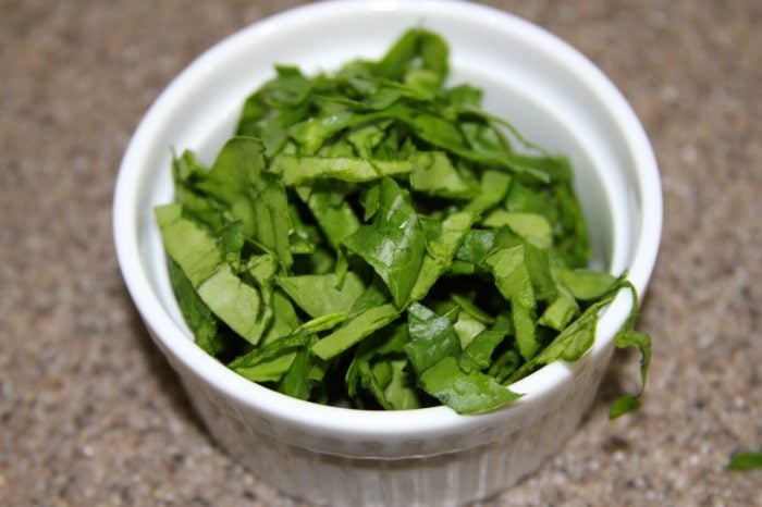 - In same fry pan add tomato, spinach, cook 1 minute, stirring.