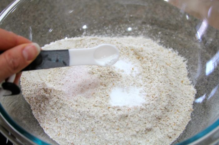 - Add salt, baking soda, baking powder, mix well.