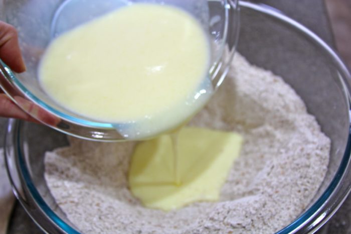 At first I thought I was making a giant biscuit. But, WOW! it’s so much better than that… it’s like a cross between a bread and a biscuit. : ) If you can’t find this fun flour by St. Patricks Day, it would work just fine with any red whole wheat flour as well.