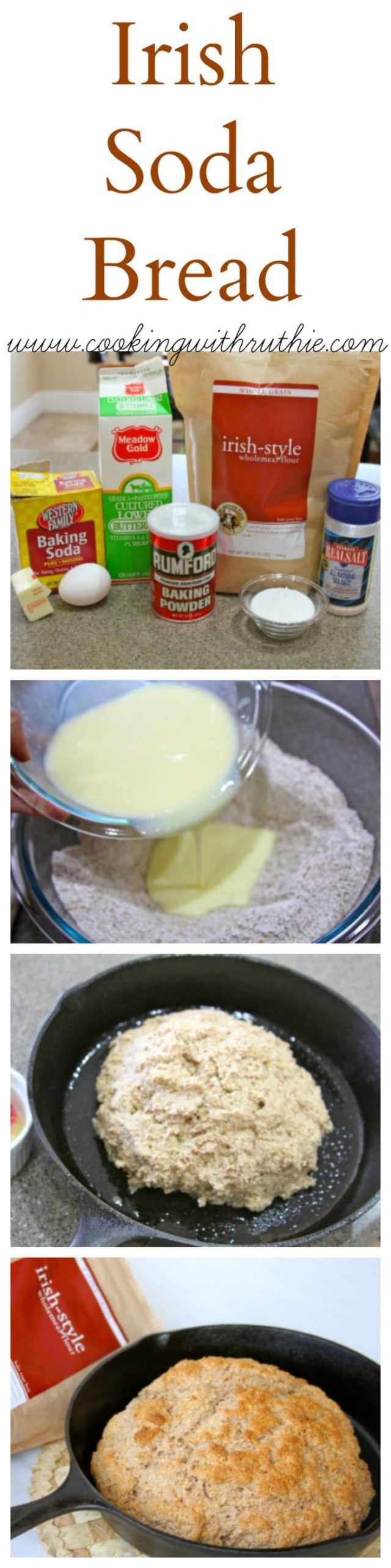 Irish Soda Bread Recipe is a 100% whole wheat bread that uses baking soda and powder for leavening--it's a "craggy" everyday Irish loaf