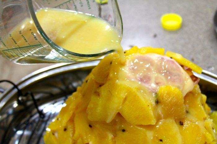 12. Refrigerate the remainder of pineapple glaze.