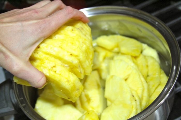 3. Reduce heat and simmer until pineapple is translucent and mixture reduced to 4 cups. (approx 60-80 minutes).