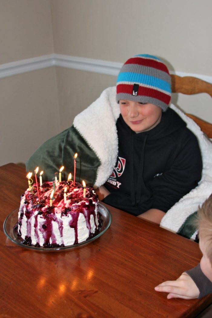 - Jake getting ready to blow out the candles on his birthday cake
