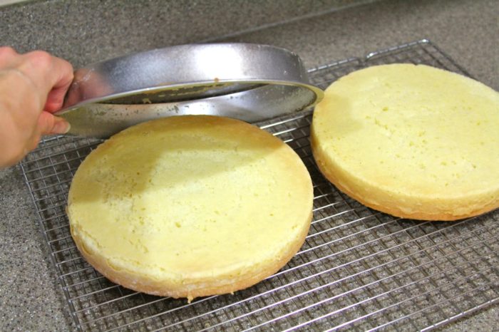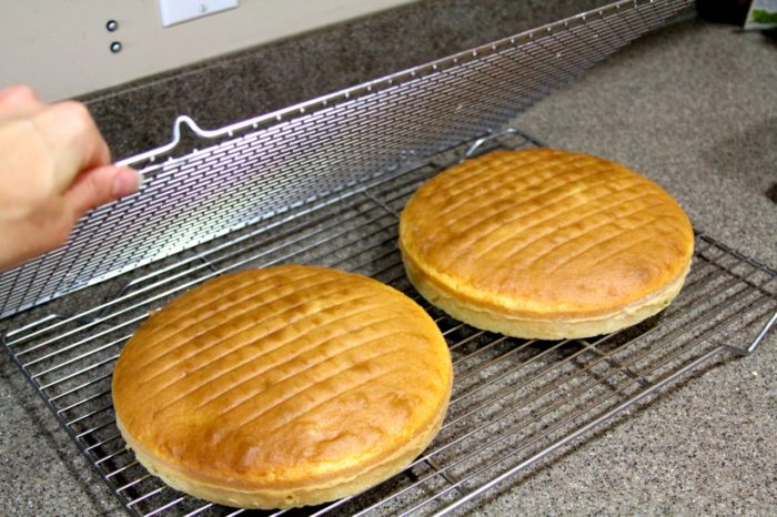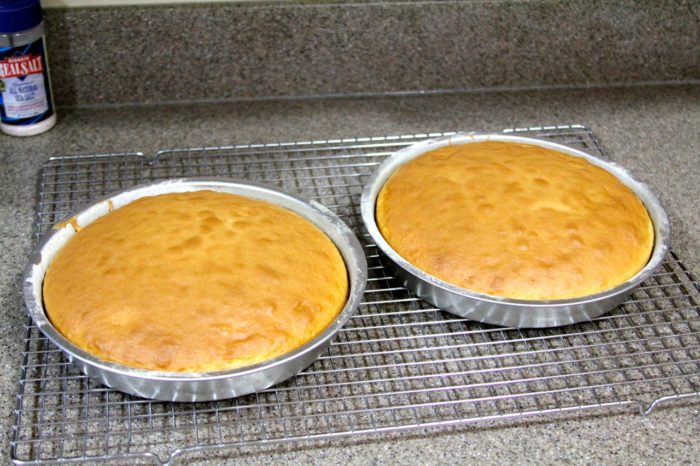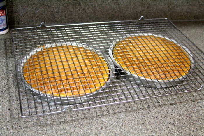 - Place rack on bottoms of cakes, invert to tops up again… finish cooling